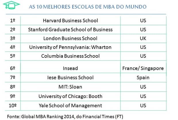Quer fazer um MBA fora, mas está em dúvida em quais universidades se inscrever? Analisar os rankings internacionais é sempre um passo importante para conhecer o prestígio de uma instituição. Nesta tarefa, o Financial Times (FT) pode te ajudar: o jornal britânico publicou um ranking das 100 melhores escolas de MBA do mundo.