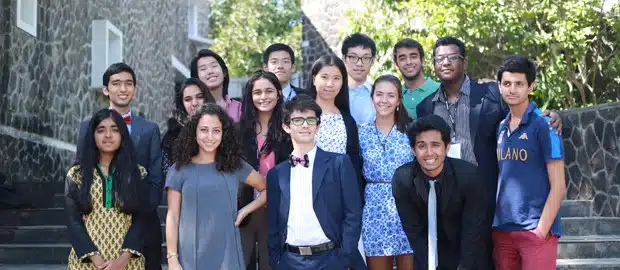 *Foto: Lucas (o 1º à esquerda, no alto) com seus colegas do Mahindra United World College (UWC)