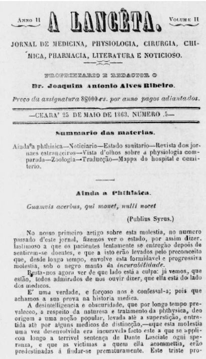Além de caridoso, Joaquim a todo momento quis aplicar os conhecimentos que aprendeu em Harvard por meio de um do periódico científico médico “A Lanceta“, um dos primeiros da época e de sua autoria. Ele foi editor e escritor de 3 volumes desse jornal, que trazia artigos científicos, orientações médicas e propaganda das publicações de seus próprios livros, além de outros textos.